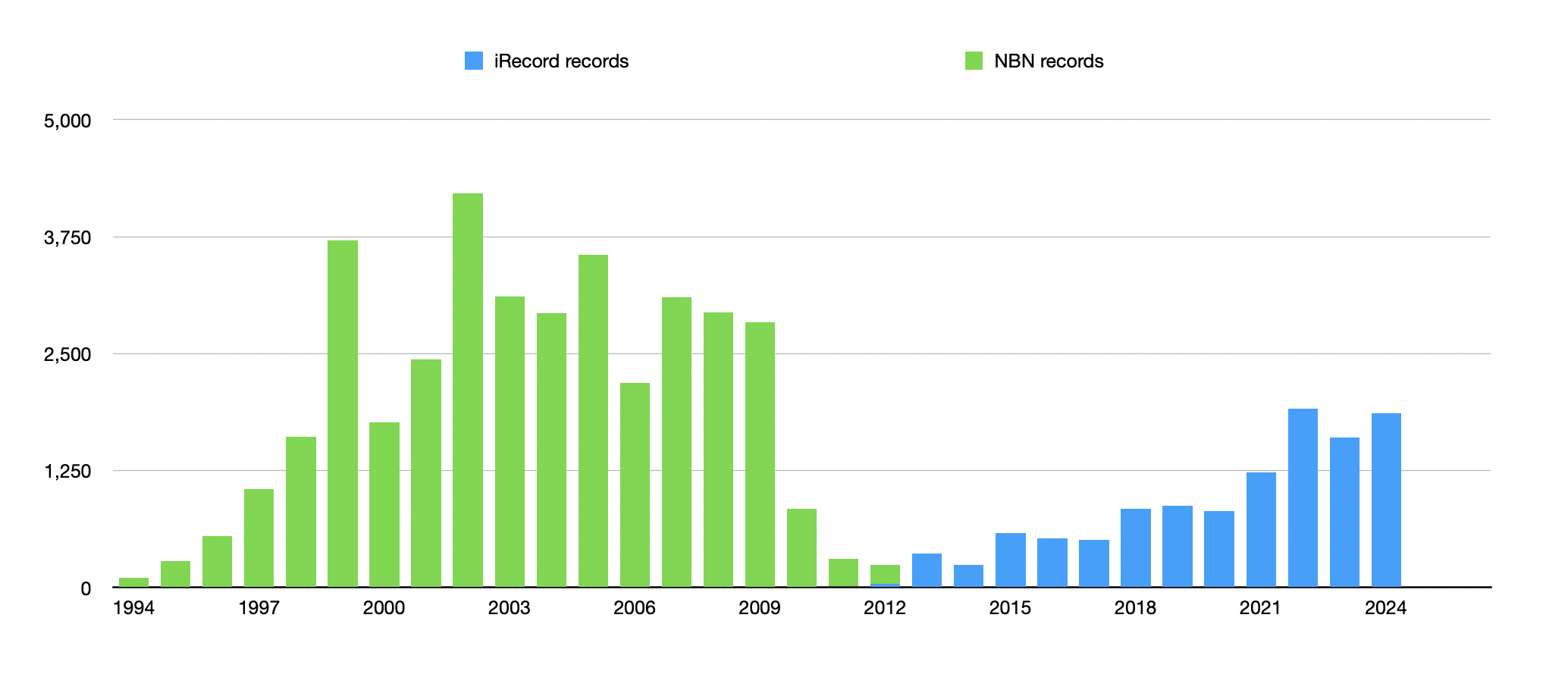 In 2024 we had 1862 records on iRecord added to the database as either Correct or Considered Correct. This was compared to 1600 in 2023 and 1914 in 2022. There were records for 71 of the 96 species in the group.