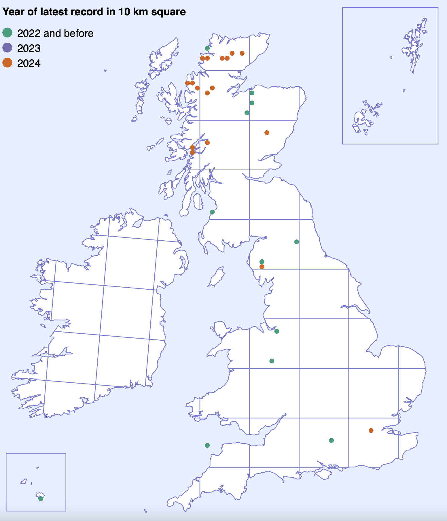 There were 20 records this year mostly in Highlands which is it’s ideal habitat.