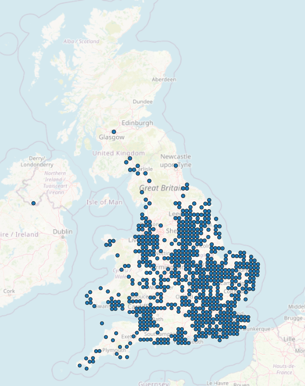 Roll forward to 2024 and I have created this current map where I have combined all the records from NBN atlas.com and iRecord.org.uk using OSGM in QGIS.