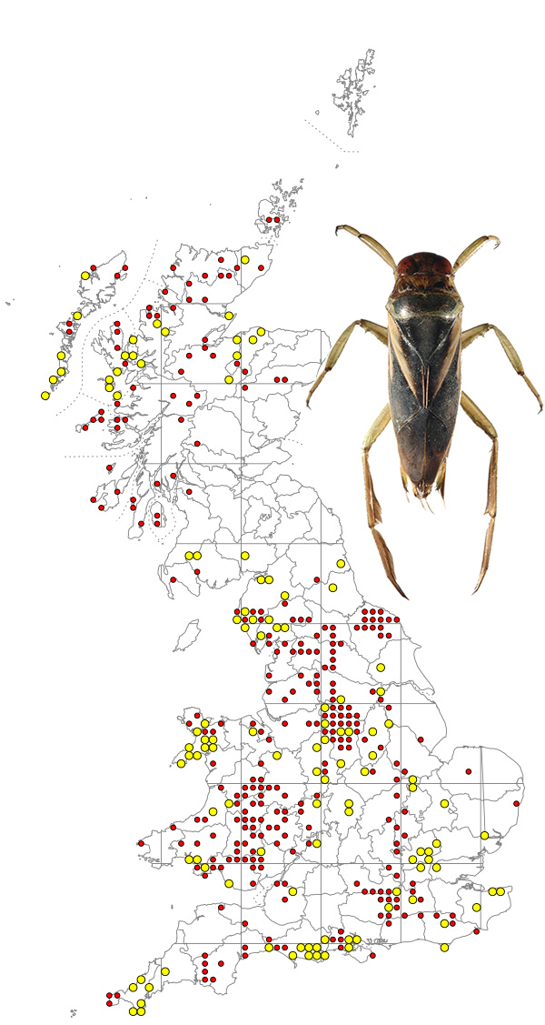 The map is based on records from NBN Gateway, with yellow dots showing pre 1990 records, reds dots 1990 – 2015 records and red on yellow dots overlapping records.
