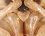 Male pala Metasternal xiphus (ventral surface between middle and hind legs)
