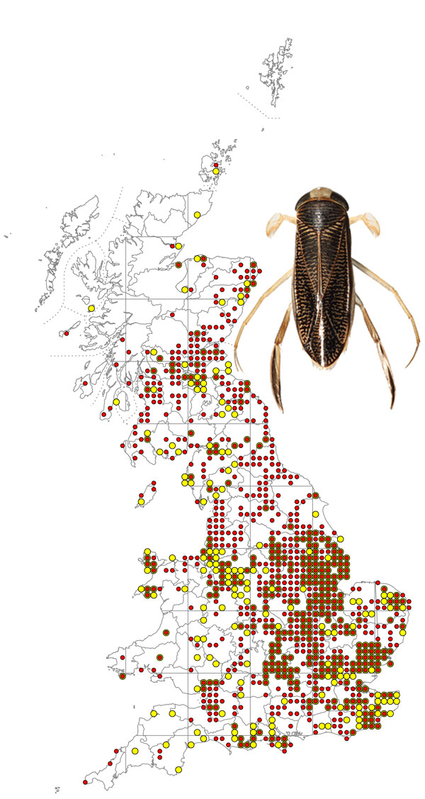 The map is based on records from NBN Gateway, with yellow dots showing pre 1990 records, reds dots 1990 – 2015 records and red on yellow dots overlapping records. A widespread species in the UK although more scattered in the west. It occurs Ireland where records are predominantly from the northern half of the island.