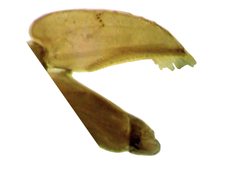 It is a tricky species to identify at 7.5mm with the claws on the middle leg longer than the tibia. The best feature is with the Male palae that have a pale angled line of pegs forming an arrow head pointing inwards.